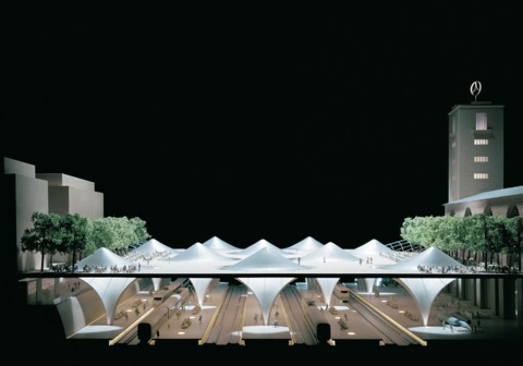 Mit dem Entwurf des Architekten Christoph Ingenhoven setzt die Bahn ein markantes Zeichen in der Landeshauptstadt. Der Tiefbahnhof mit seiner außergewöhnlichen Form und seiner mit Tageslicht durchfluteten Bahnsteighalle ist bisher einzigartig in der Architekturgeschichte. Der weithin sichtbare Bonatzbau bleibt mit dem Bahnhof verbunden.